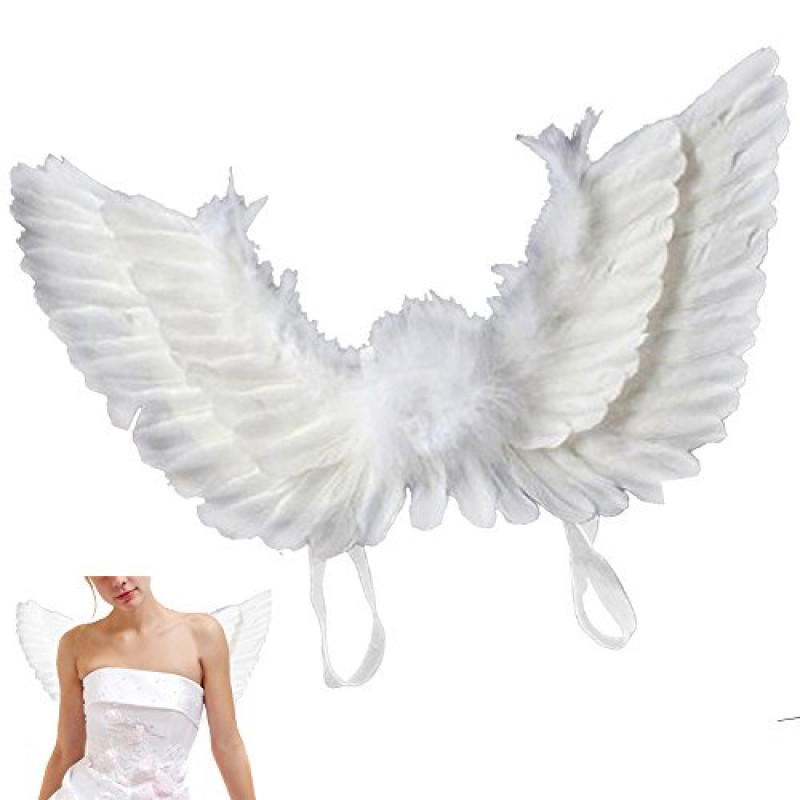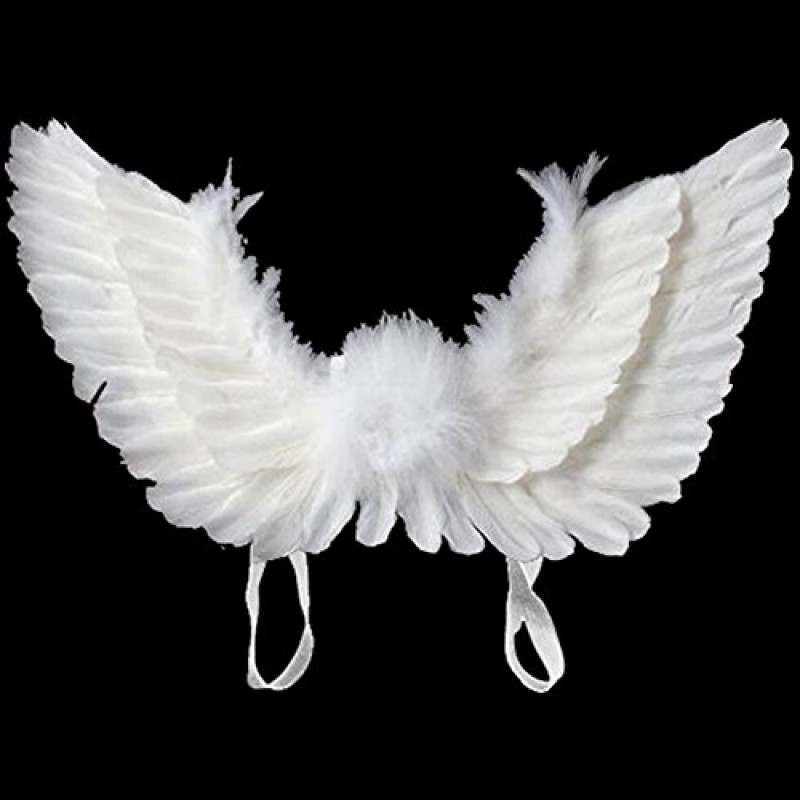 Asas são feitas com penas de verdade, com elástico nos braços.