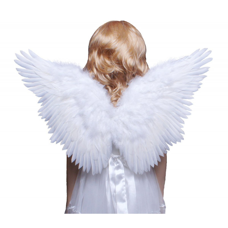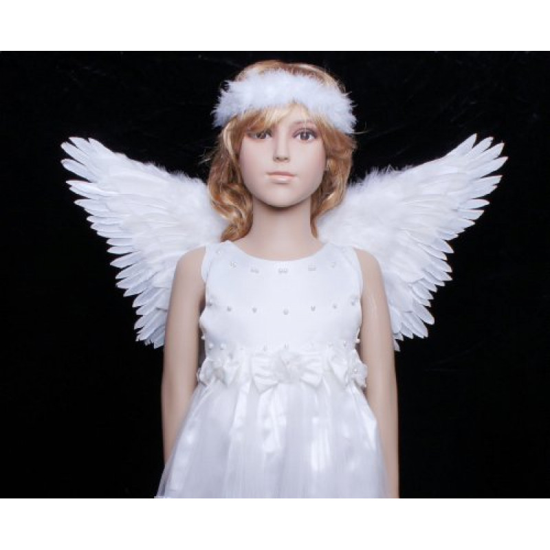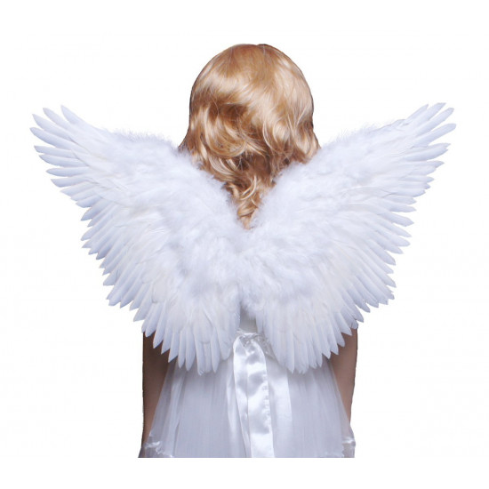 Asas são feitas com penas de verdade, com elástico nos braços.