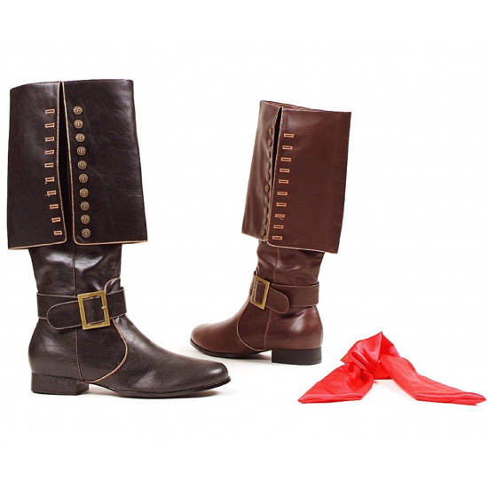 Esta bota de adulto Piratas do Caribe, composta de um par de botas na cor marrom estilo piratas, com salto, uma fivela e detalhes de ouro na parte de fora da lateral. Também está incluída uma faixa vermelha removível. Fechamento com zíper.