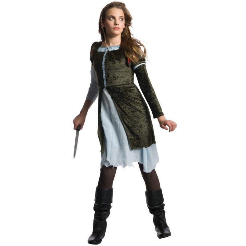 Você terá um olhar arrebatador e estará pronta para governar como no filme Branca de Neve e o Caçador, que inclui um vestido azul claro e verde que caracteriza uma floresta verde de veludo com sobreposição, mangas com detalhes amarrados e calças marrons. Simplismente lindo.