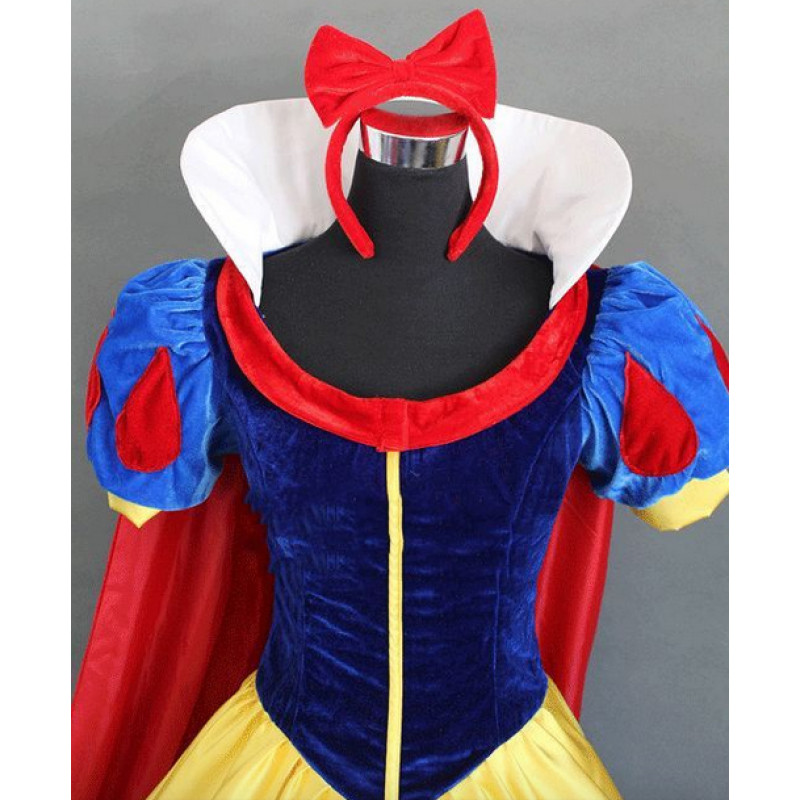 Branca de Neve é uma linda princesa em seu vestido azul, vermelho e amarelo. Se você quer algo fiel ao original, mais exatamente um modelo profissional para peças d teatro, promoções, buffets, seguindo a linha do original dos filmes, este traje é perfeito para você.