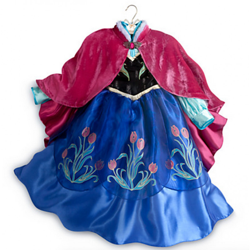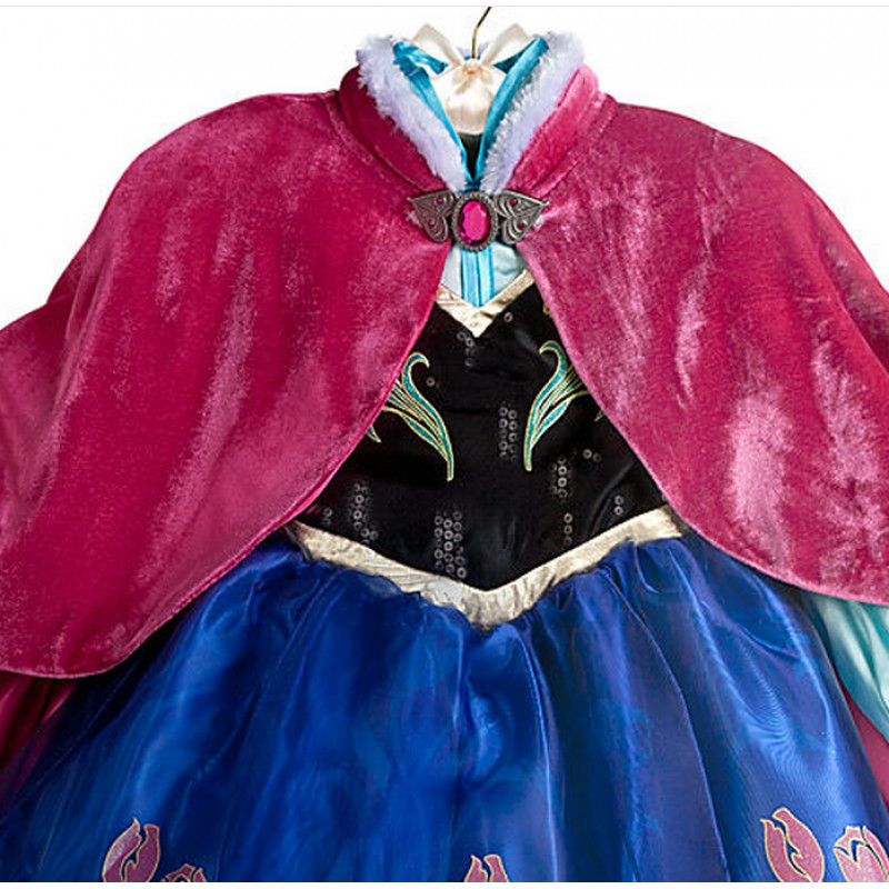 Transforme sua pequena na linda princesa Anna, com este traje alegre, com parte do peito em tecido preto e detalhes em verde, todo bordado, blusa em tecido cetim na cor verde, saia na cor azul em tecido liso e sobresaia em tecido transparente todo bordado. Inclui também uma capa vermelha em tecido aveludado, que pode ser anexado ao vestido.