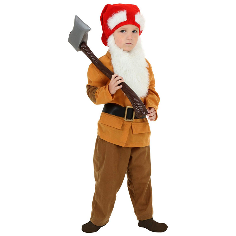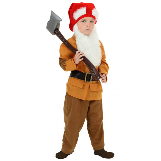Este traje inclui um macacão marrom dos 7 anões, com um grande cinto. Chapéu com barba completam este lindo traje para os pequenos.