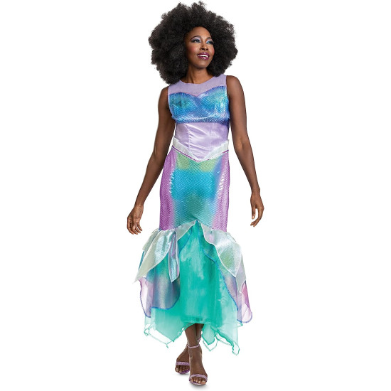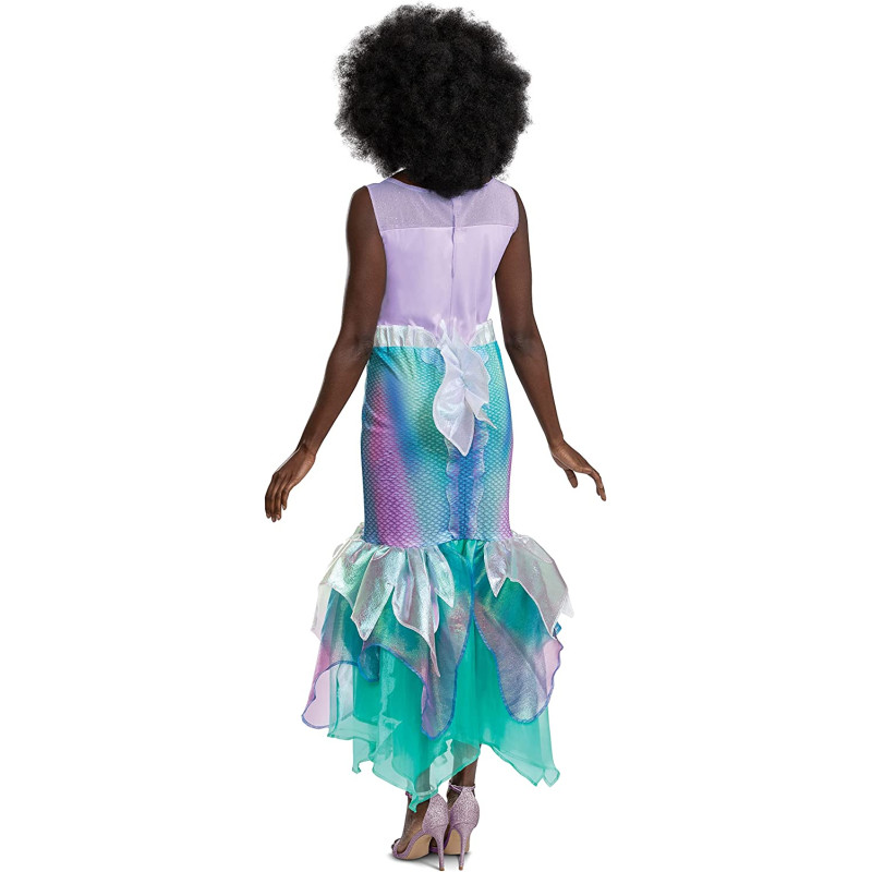 Traje da Princesa Ariel inclui o vestido sem manga e sobre saias verde-claro.