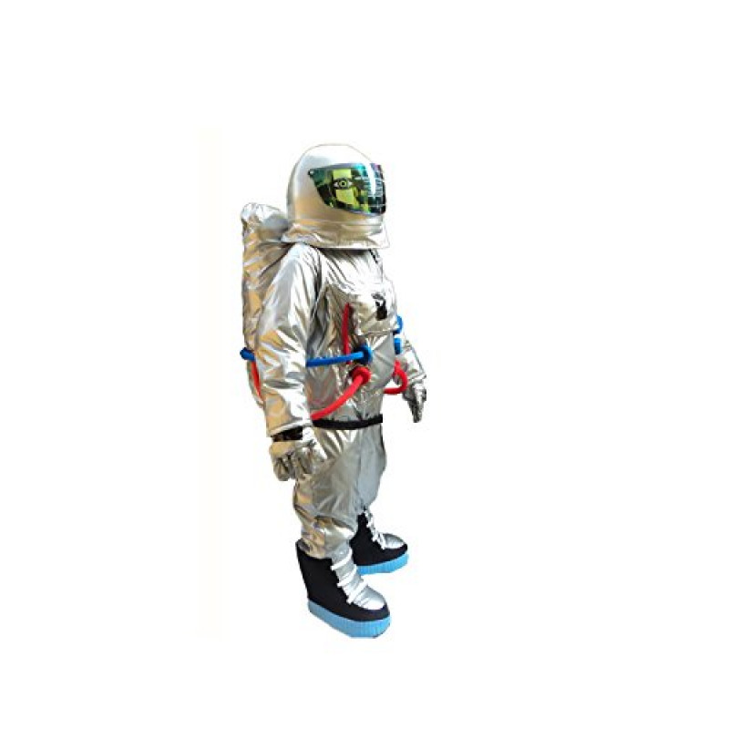 Inclui o corpo do personagem, com um macacão prateado, Imitação de botas combinando e um par de luvas, inclui também um capacete, com cabeça é feita de EVA, mais forte, leve, respirável e lavável por dentro