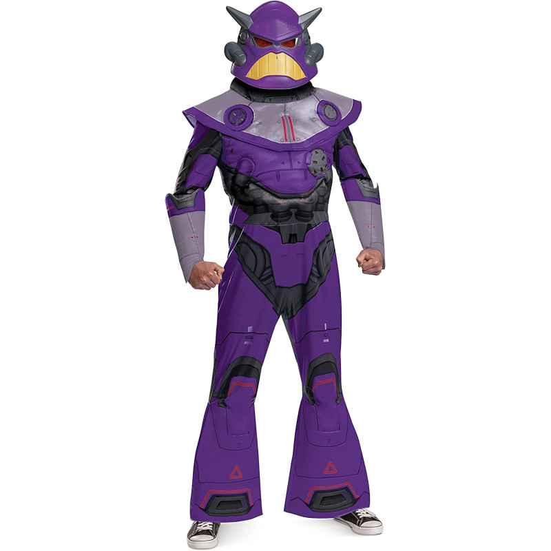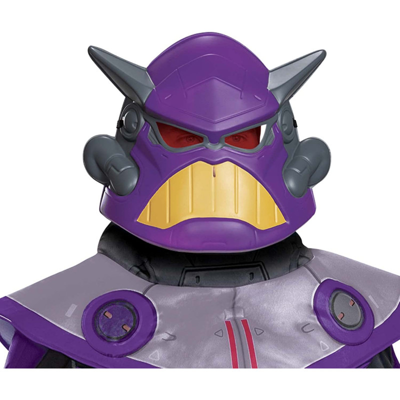 Torne-se o poderoso Zurg que inclui um macacão na cor lilás, uma touca/capuz que cobre toda a cabeça, máscara do personagem.