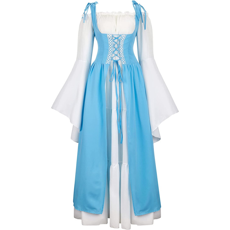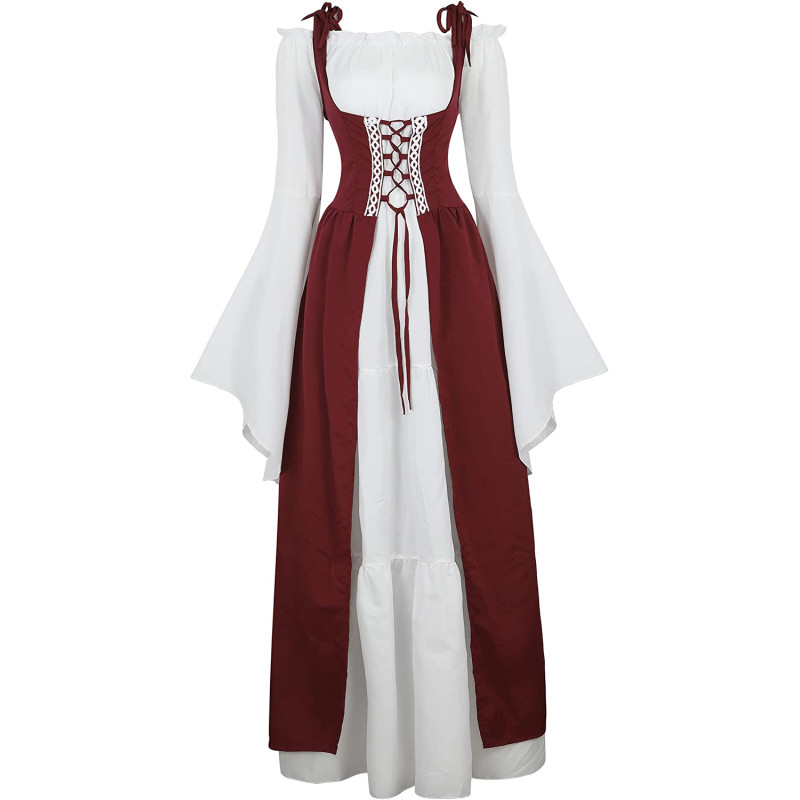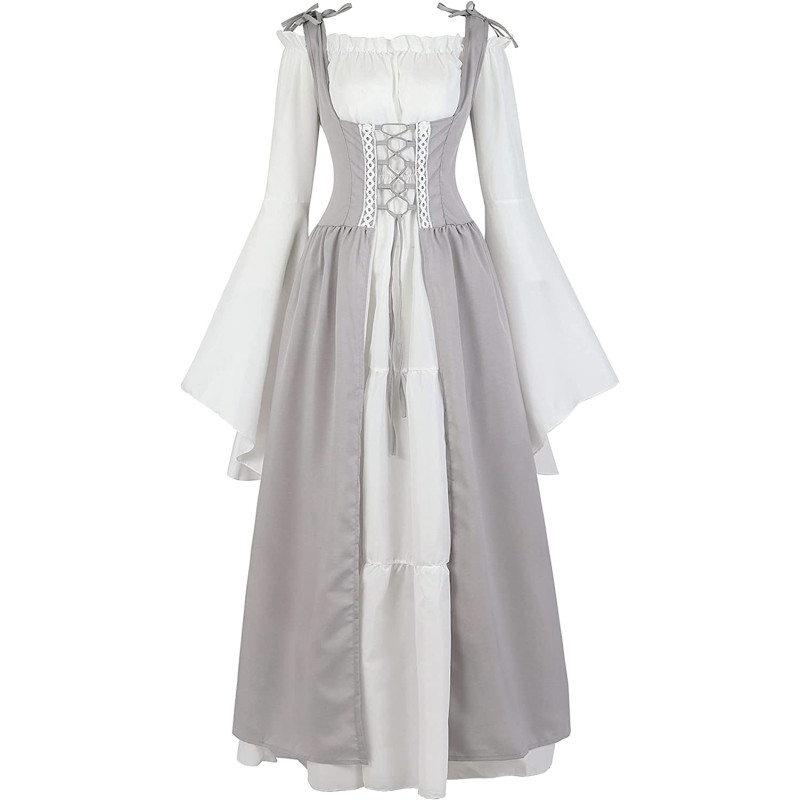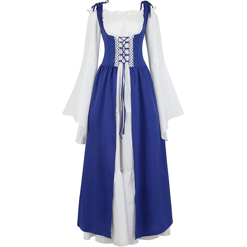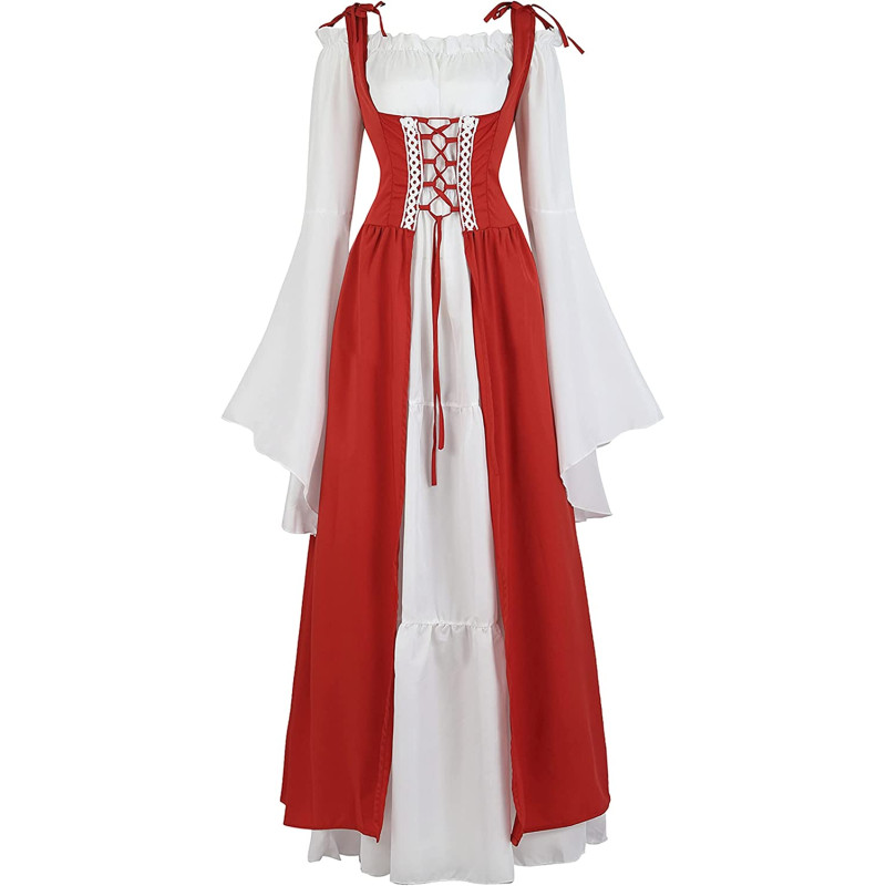 Torne-se uma encantadora mulher do campo medieval nesta peça grandiosa que inclui um vestido charmoso branco, com saia em camadas e um sobre vestido em várias cores, com detalhe de amarração na frente, estilo corpete, dando um charme especial a fantasia.