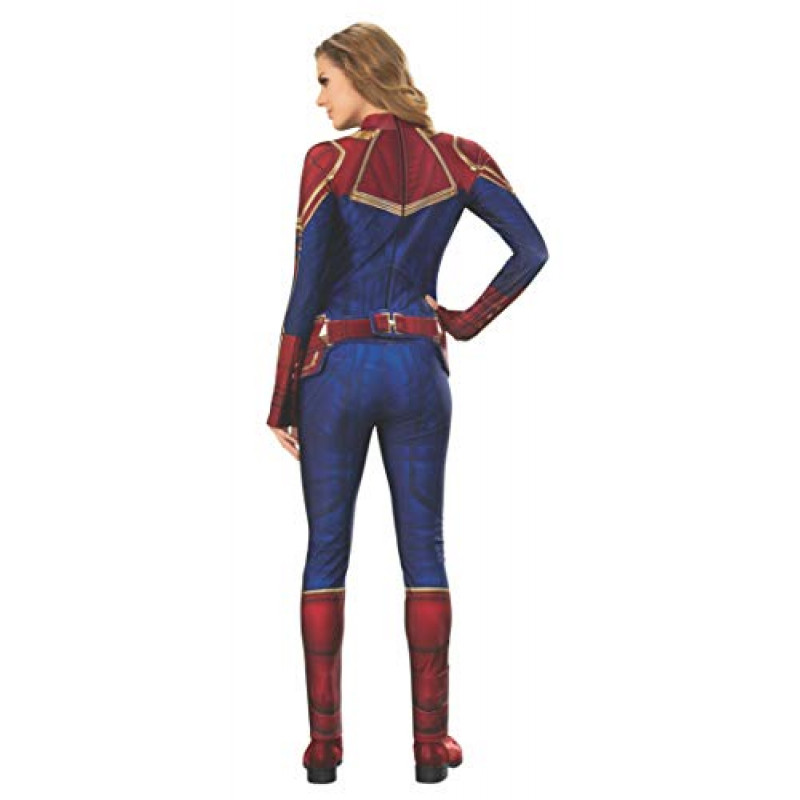 Linda fantasia da corajosa Capitã Marvel, das telinhas do cinema, Inclui um lindo macacão azul e vermelho, com imitação de botas e um lindo cinto da personagem.