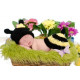 Conjunto de crochê composto de 2 peças. Touca em amarelo e preto com orelhinha e uma flor e cobertura para a fralda acompanhando a mesma cor com o rabinho.
