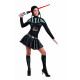 Sinta-se como Lord Vader em nosso traje de luxo composto por um vestido preto com detalhes no peito, frente e pernas, cinto de utilidades, meias e touca.