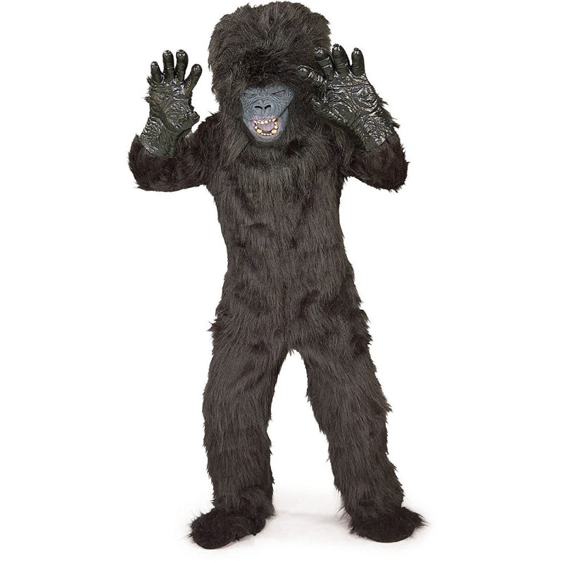 Seu filho vai certamente amar ser um Gorila. Inclui um macacão de pelucia, com mãos e pés, imitando o animal. Máscara facial cheia com vida como olhos e dentes. Tudo que você precisa é uma banana e este traje está completo!