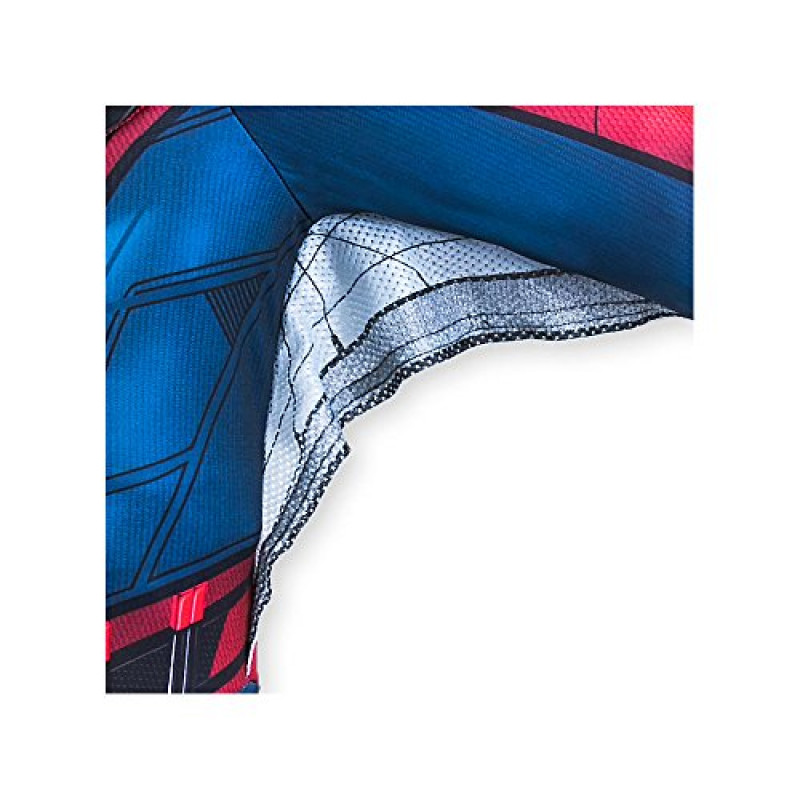 Esta fantasia do Homem Aranha inclui um macacão azul e vermelho com peito musculoso e um emblema de Homem Aranha no peito. Também inclui uma máscara, luvas e imitação de botas do personagem.