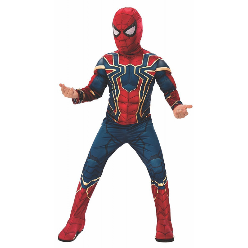 Esta fantasia do Homem Aranha inclui um macacão azul e vermelho e um emblema de Homem Aranha no peito e imitação dos pés. Também inclui uma máscara do personagem. Bem realística.