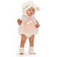 Este traje inclui um macacão em tecido branco e detalhe da barriga em tecido cor pessego claro, sem perna e de mangas curtas em tecido pelúcia super confortavél e macio, com dois pompons no pescoço. Touca combinando com orelhinhas. E capa imitando as patinhas dão a este traje um charme especial e encantador.