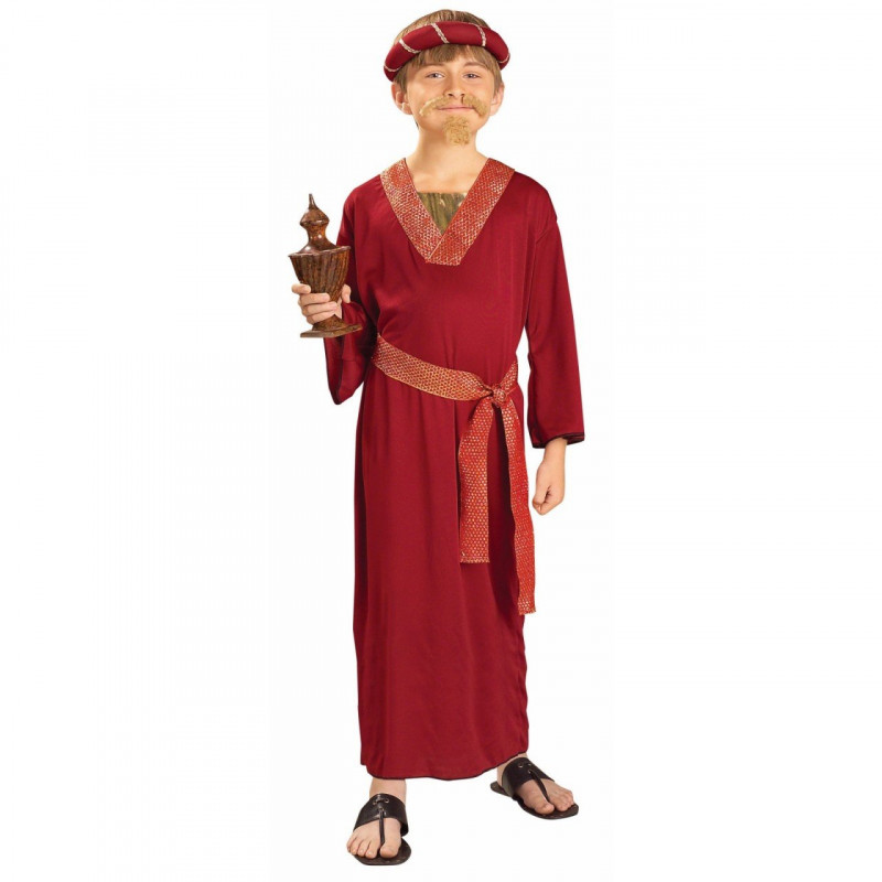 Este traje inclui Maravilhoso manto cor de vinho e detalhes dourados, um enfeite de cabeça vinho e ouro, um cinto de amarrar.
