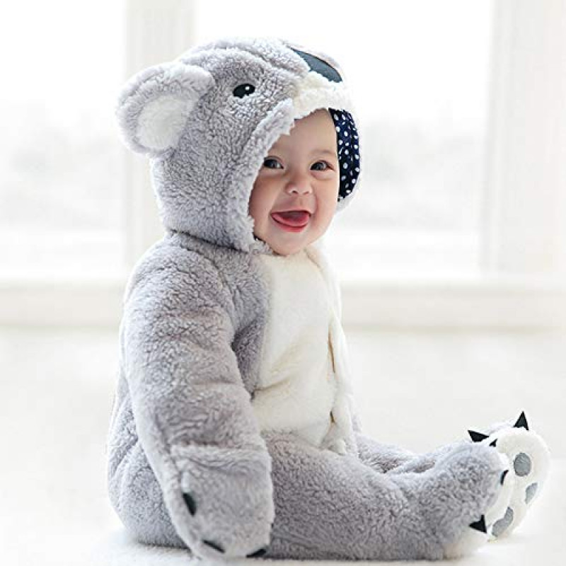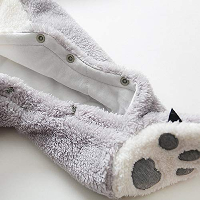 - Um macacão forrado com zíper e feixo de pressão para troca de fraldas.