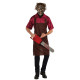 Traje inclui uma camisa vermelha com avental marrom. Inclui também a máscara do personagem com cabelo.