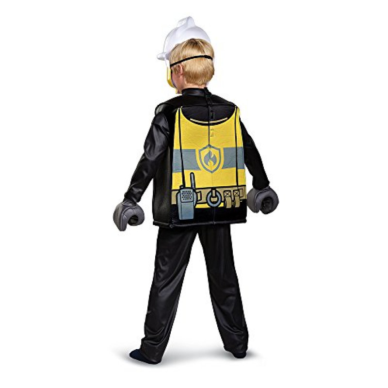Seja como um valente bombeiro e salve vidas, mas em estilo Lego. Inclui uma roupa na cor preta com detalhes realísticos, dando a impressão de ser um boneco de plástico, máscara do personagem, calça em estilo e completando o traje. Inclui também luvas imitando a mão do boneco da lego.