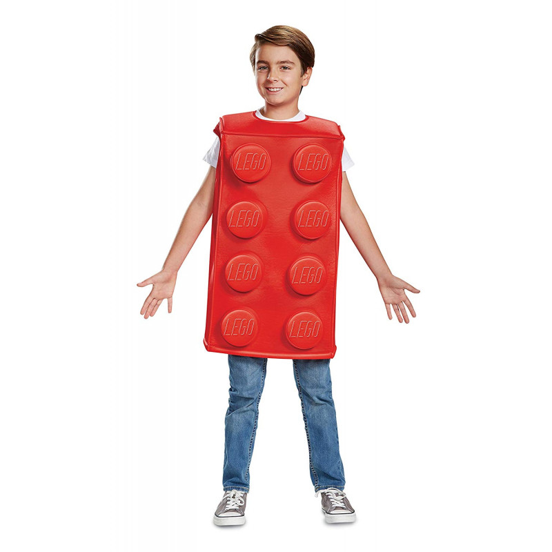 Bonecos blocos, inclui uma fantasia com camisa vermelha estruturada, com logo Lego.