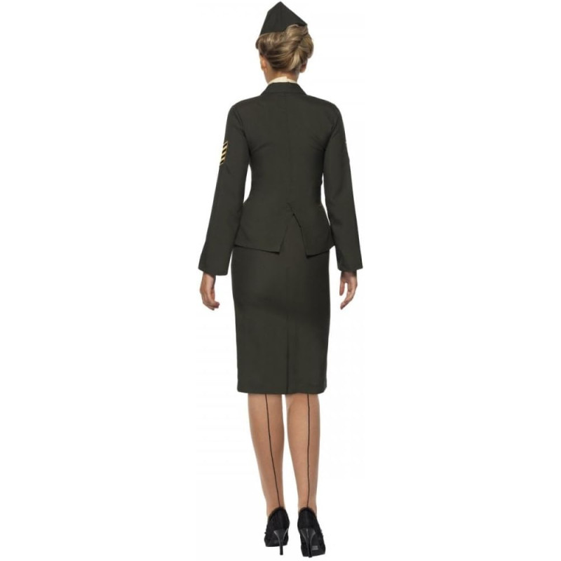 Fantasia de marinheira, com uma jaqueta ajustada, com saia, chapéu e gravata.