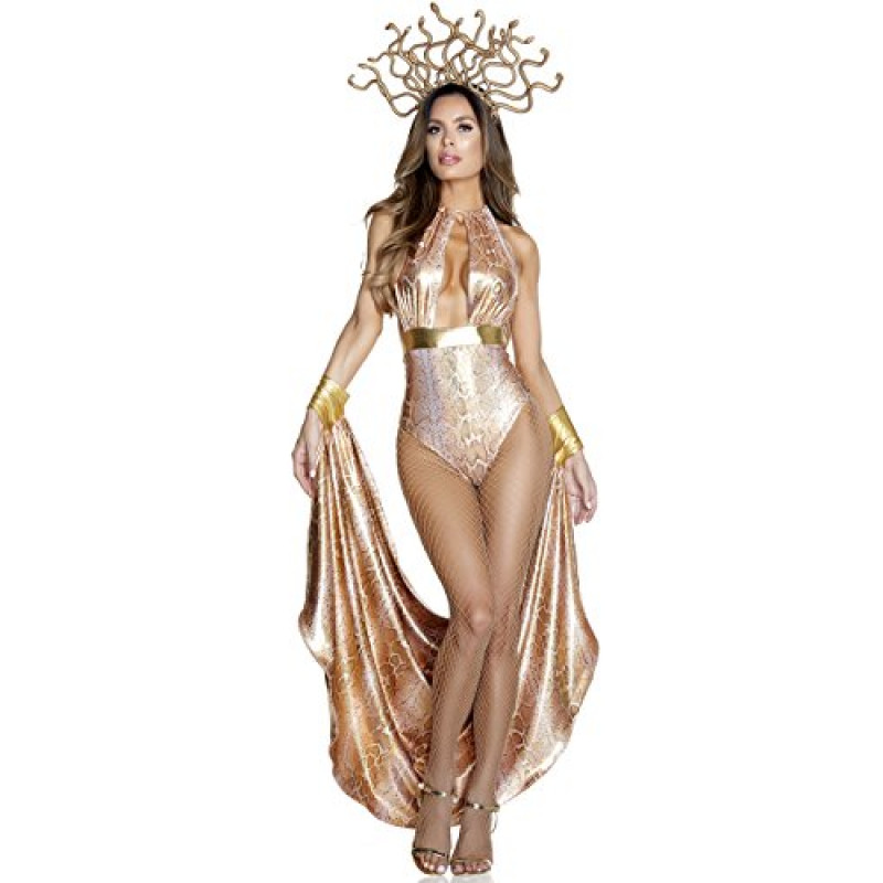 Este traje contém um maio detalhado em tons dourado, sem mangas, detalhe dos braceletes e detalhe da capa.