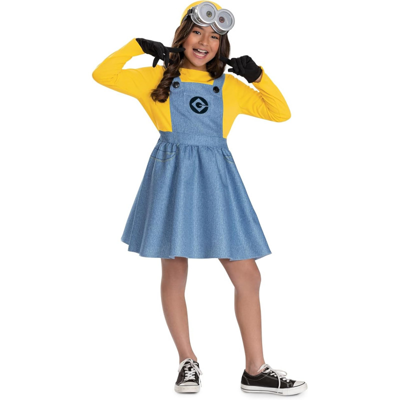 Esta fantasia da Minion Dave (feminino) inclui vestido, tiara, óculos e luvas.