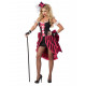 Inspirado no famoso cabaré Moulin Rouge. A fantasia tem corpete bordado com fitas de prata para criar a clivagem perfeita. o volumoso de dupla camada mais saia é aparado em cetim rosa quente babados e inclui um underskirt ajustável que muda de comprimento do joelho para mini-saia com facilidade. Um chapéu de mini-top adorável, luvas sem dedos, e mangas destacadas estão incluídos.