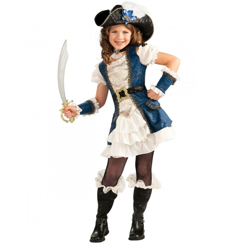 Inclui um vestido encantador em bege e azul, com babados na frente e detalhes dourados, cinto, detalhes dos punhos, imitação de botas, chapéu com detalhe de broche, laço e pena, e gargantilha, dão a este traje um ar realístico e único.