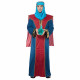 Esta fantasia de luxo do mago Sábio inclui uma roupa em tons azul e vermelho e o enfeite da cabeça.