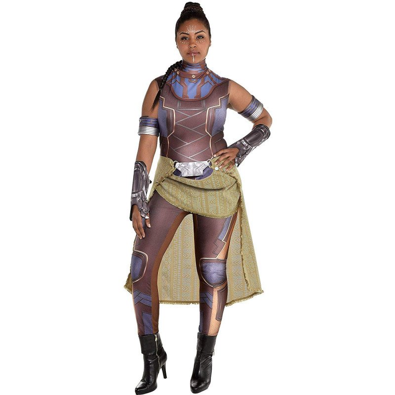 Fantasia da irmã do Pantera negra Shuri, Inclui um macacão e faixa desenhados. Inclui também 2 braçadeiras e 2 luvas articulados com espumas.