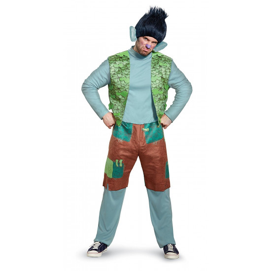 Fantasia do personagem Tronco de Trolls. Inclui um macacão cheio de detalhes como do personagem do filme e uma peruca de cabelos espantados.
