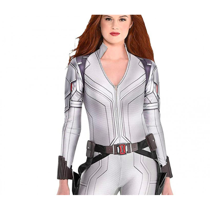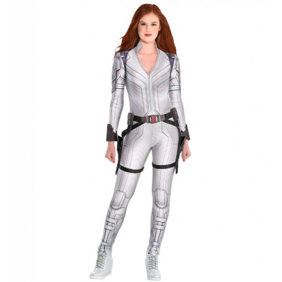 Esta fantasia Super Luxo da coleção "Os Vingadores" inclui um macacão branco sexy com detalhes na coxa e 2 braceletes para as mangas. Possui cinto, que completa a fantasia.