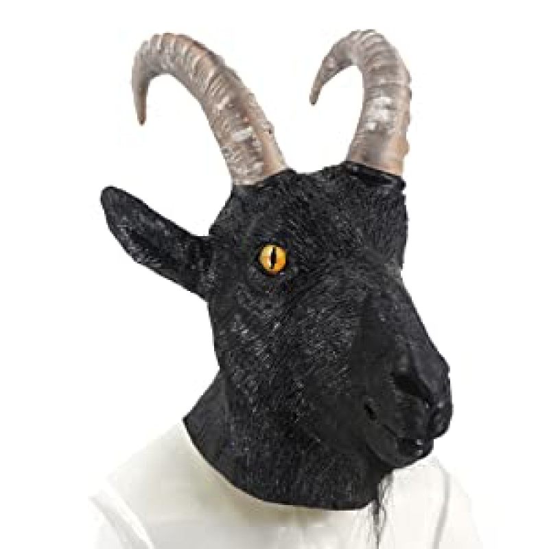 Máscara de Bode feita de latex. Com os olhos, nariz, boca, dente, muito detalhada e muito perto do real.