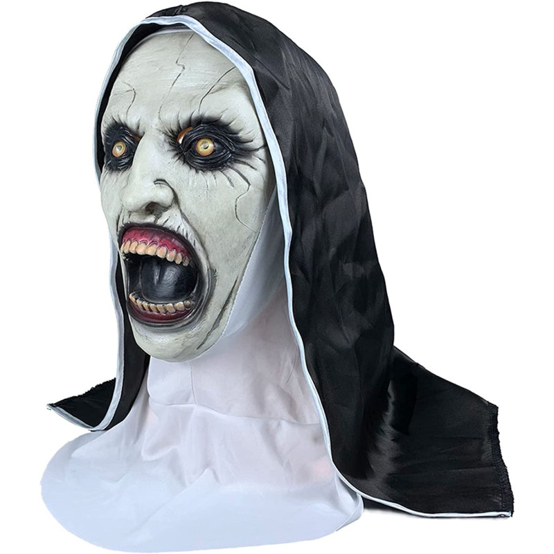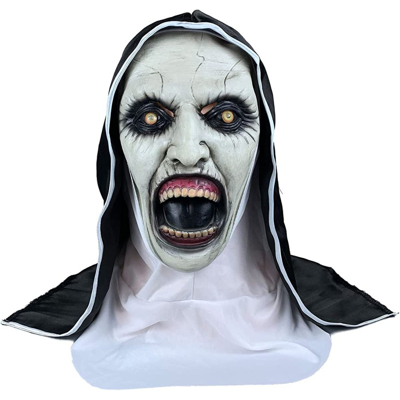 Seja uma pessoa com propósito cristão, vestida como uma autêntica máscara de rosto de freira nesta fantasia que inclui um capuz sobre a cabeça branco, um véu sobre a cabeça em cor preta.