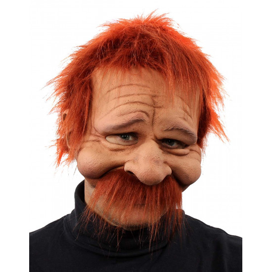 Inclui uma máscara de material flexível, e muito realística. Com cabelos e bigode ruivos.
