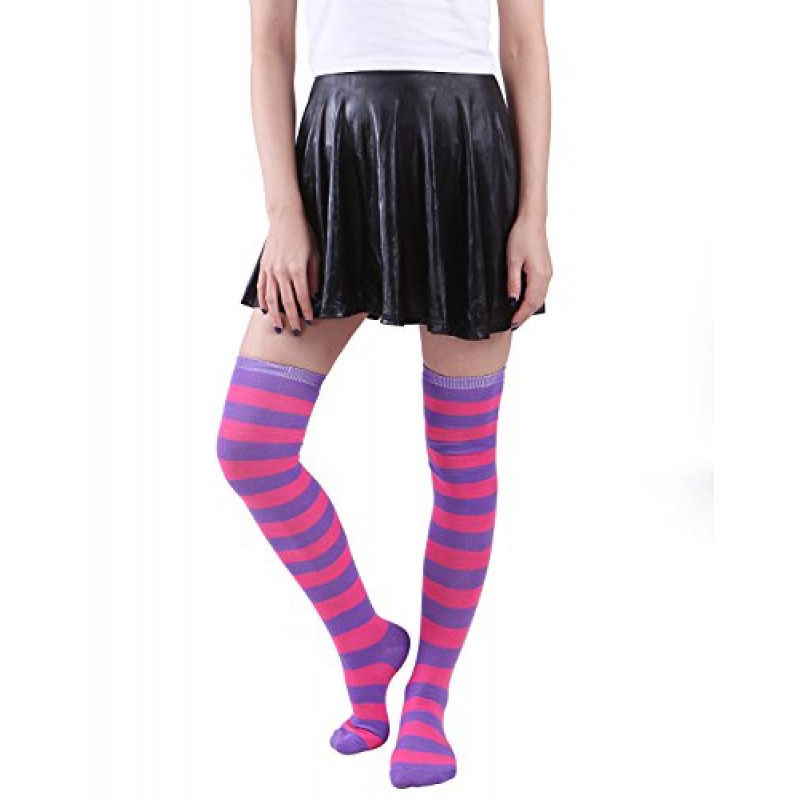Meia Calça Listrada Lilás e Rosa Adulto
