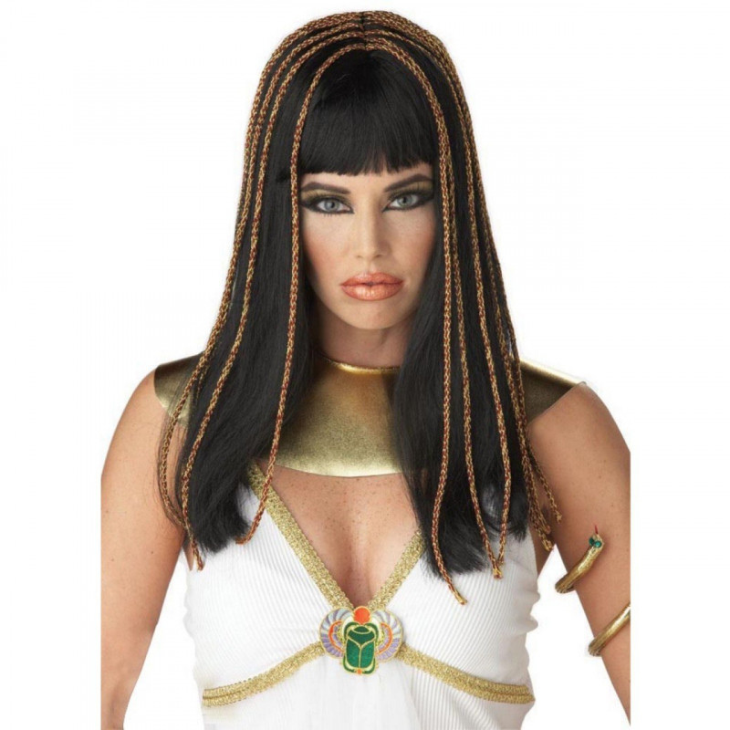 Esta peruca de princesa egípcia pode fazer qualquer Cleópatra ainda mais deslumbrante. Você irá amar essa peruca preta com detalhes dourados decorativos.