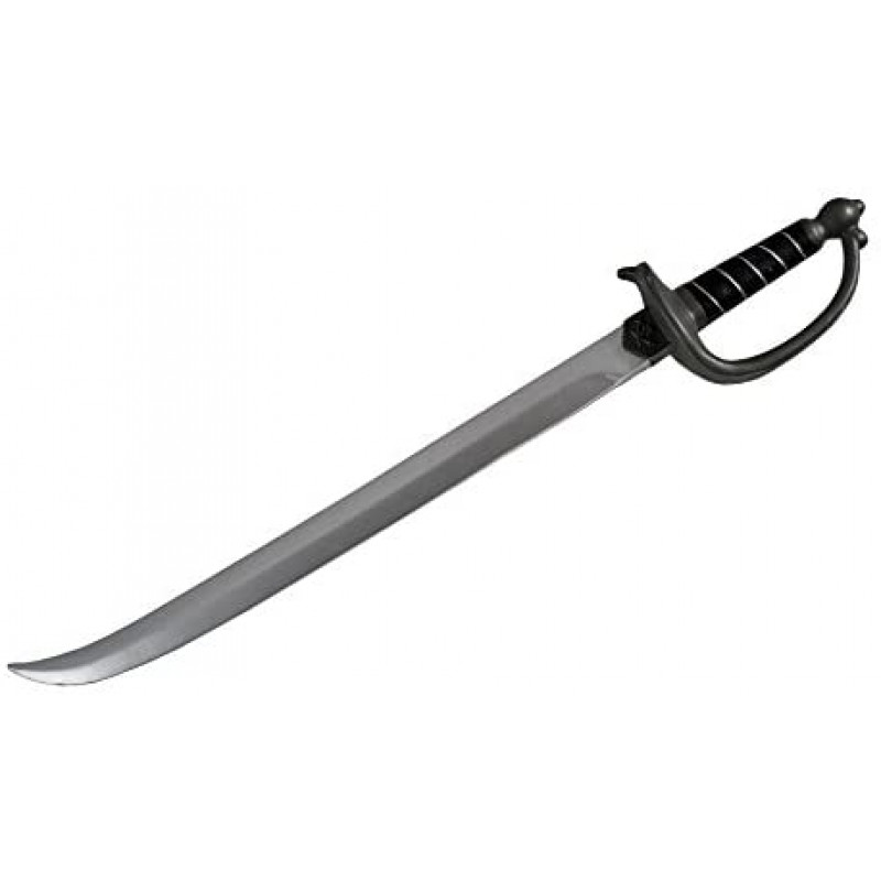 Espada Pirata plástico medidas 72cm de comprimento; lâmina de plástico é imitação de prata trabalha, cabo de plástico imitação de metal duro.