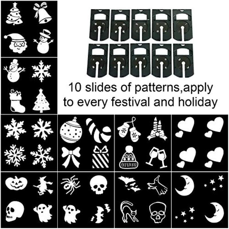 Projetor de Luz com 10 Slides de Luz com diferente imagens e motivos para todas as ocasiões, como Natal, casamento, aniversário, Halloween, festas em geral.