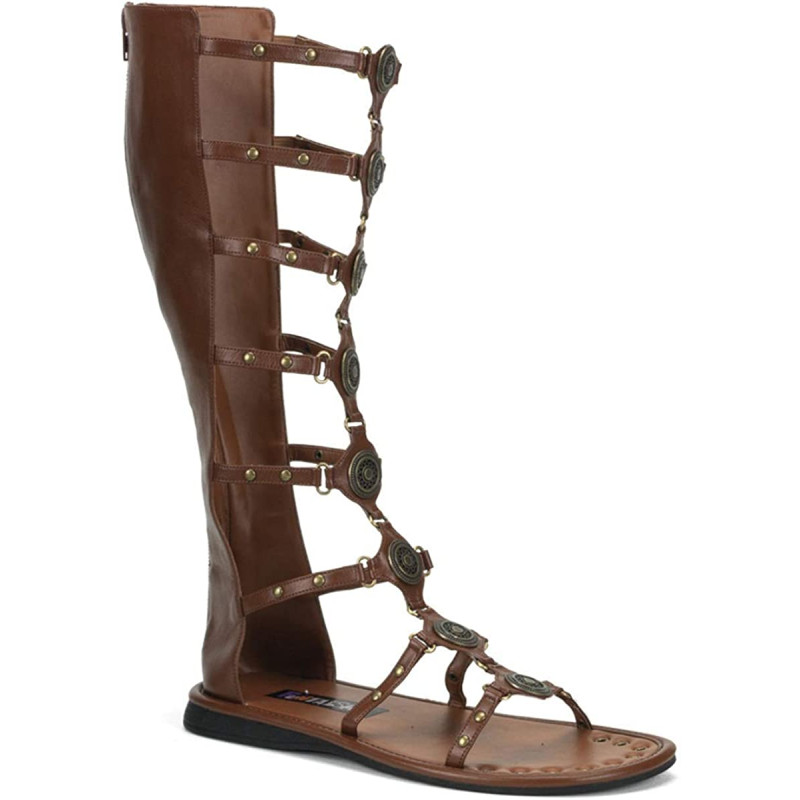 As sandálias romanas apresentam um design multi-alça com fecho de fivela e fecho com zíper atrás. Se você está se preparando para a competição no Coliseu ou pulando de seu carro de guerra para uma batalha final, estes sapatos dão a qualquer traje um olhar autêntico!