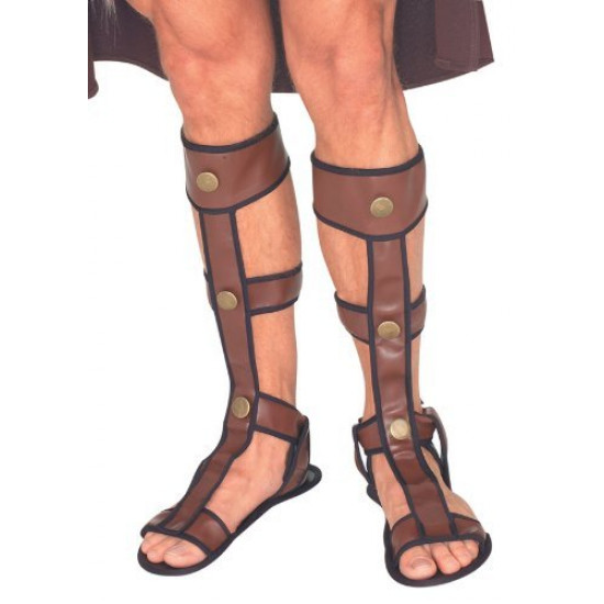 As sandálias romanas apresentam um design multi-alça com fecho de fivela e fecho com zíper atrás. Se você está se preparando para a competição no Coliseu ou pulando de seu carro de guerra para uma batalha final, estes sapatos dão a qualquer traje um olhar autêntico!