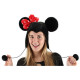 Touca da Minnie Mouse em tons preto com uma fita lateral em ton vermelho e com forro na cor preta.