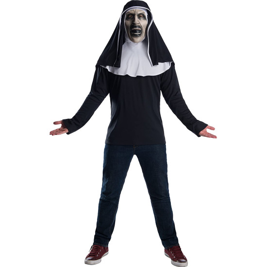 Seja uma pessoa com propósito cristão, vestida como uma autêntico capuz de freira nesta fantasia que inclui um capuz sobre a cabeça branco, um véu sobre a cabeça em cor preta.